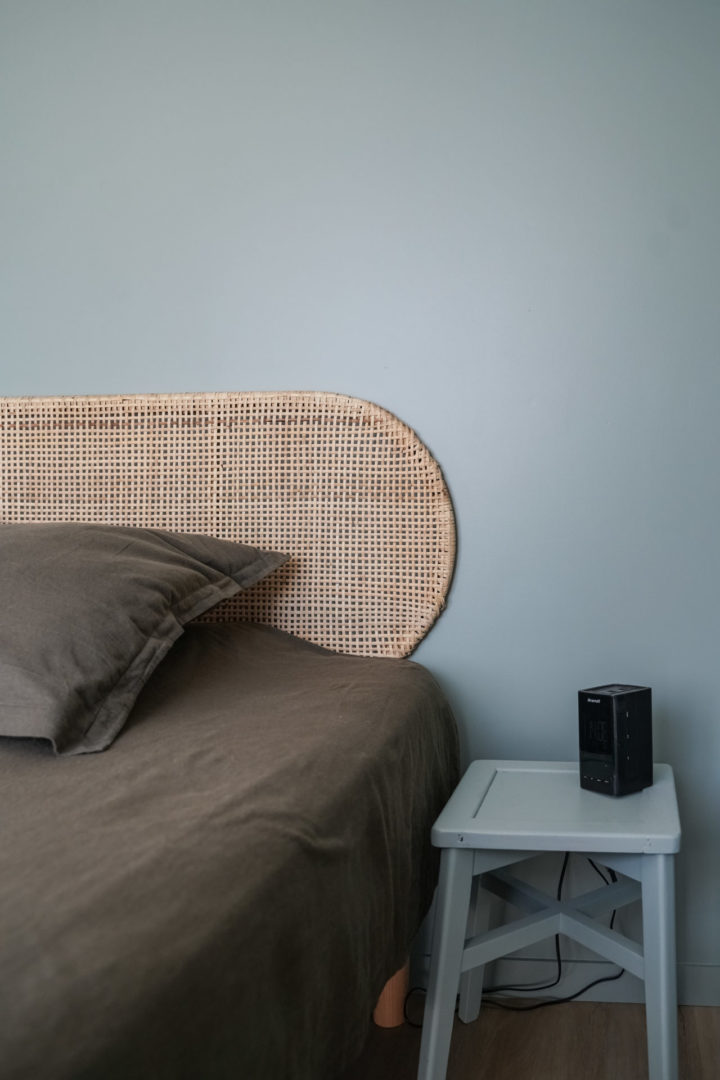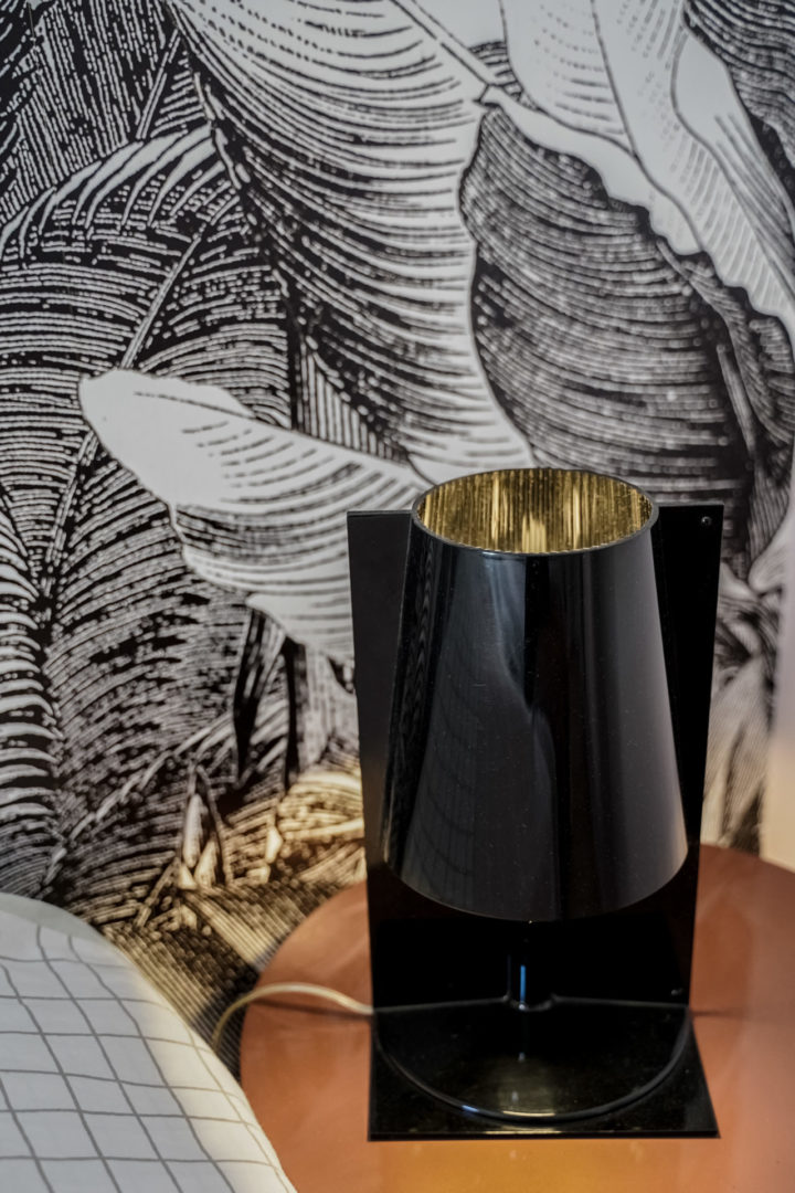 Informations mobilier: dans la pièce principale les chaises de salle à manger sont des IXIA, la loveuse est une GIFI, la couronne de fleurs vient de chez Les Mauvaises Herbes. Les lampes noire et blanche dans la première chambre sont des KARTEL. Dans la suite parentale le grand miroir de la salle de bain vient de chez IKEA, la tête de lit est une Alinéa, et les rideaux viennent de chez Maison du Monde et la parure de lit de chez Bouchara.